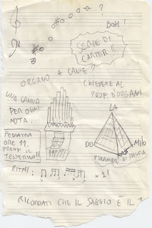 ILSARTO: « Ecco, qui vede, ho usato l’inversione della serie piramidale di Carter. Mi piacerebbe strumentarla coll’organo. Secondo lei, il prof d’organo potrebbe suonarlo per il saggio di fine d’anno? ».